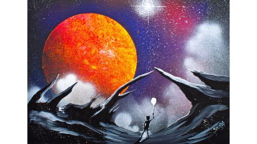 Scape With Galaxy Space Planet Acrylic Beginning Painting Tutorial Liquitex Spray Paint The Art Sherpa Community The Art Sherpa